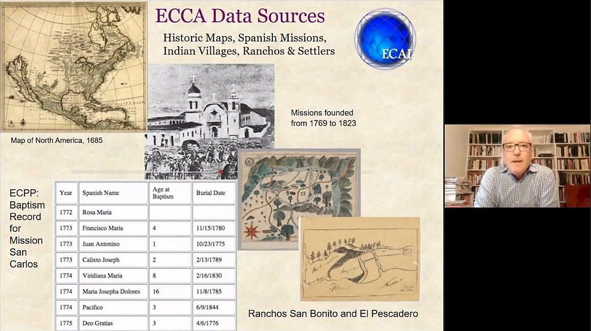 Steven Hackel of University of California, Riverside described the historical data visualized by the Early California Cultural Atlas.