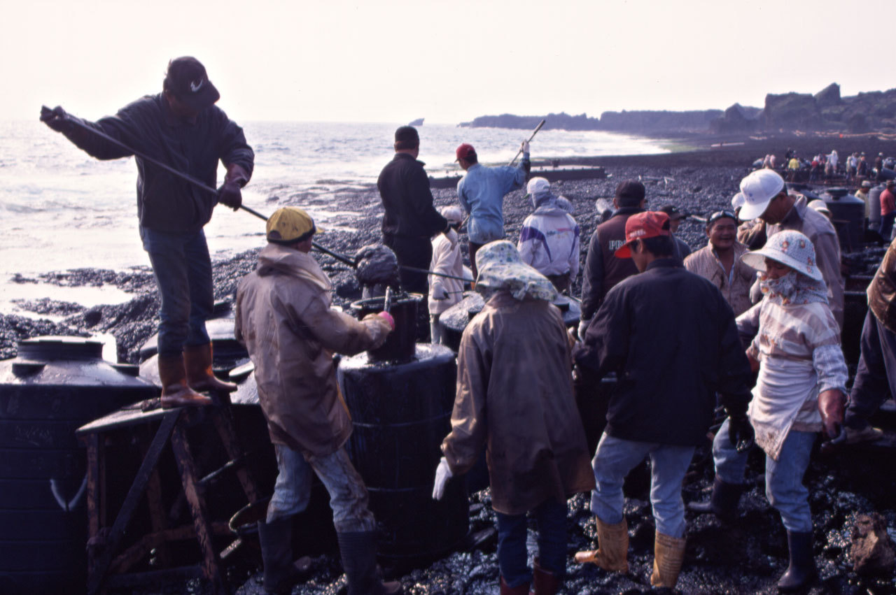 柯金源在訪談中提及,事件發生前,潮間帶是當地人重要的經濟來源,他們採集季節性的螃蟹、海菜營生。發生了油污染後,附近的村民被招攬做臨時工,以前看到他們拿著新鮮的海產漁獲,現在卻一桶、一桶提著油污回來,一天賺一千多塊的工資,但這些人們每天接觸油污,卻沒有人去做後續的健康風險追蹤,這些錢足夠他去看醫生嗎?