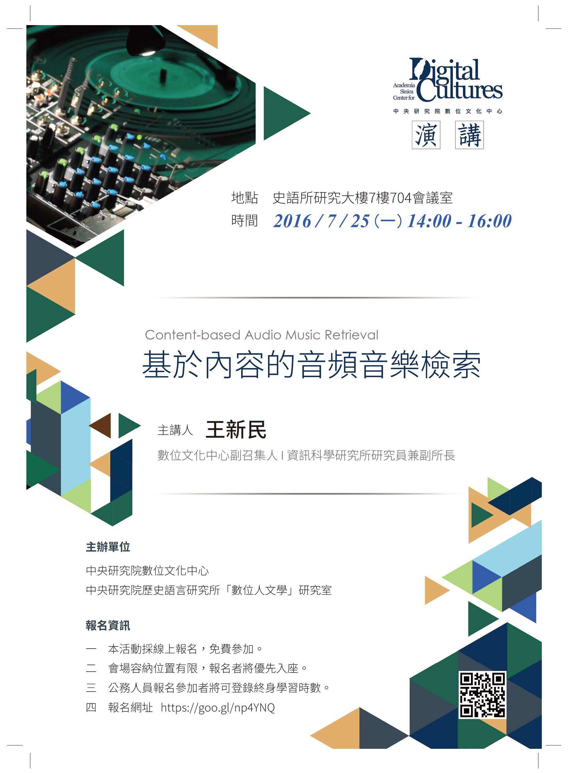 【專題演講】基於內容的音頻音樂檢索(Content-based Audio Music Retrieval) (7/25)