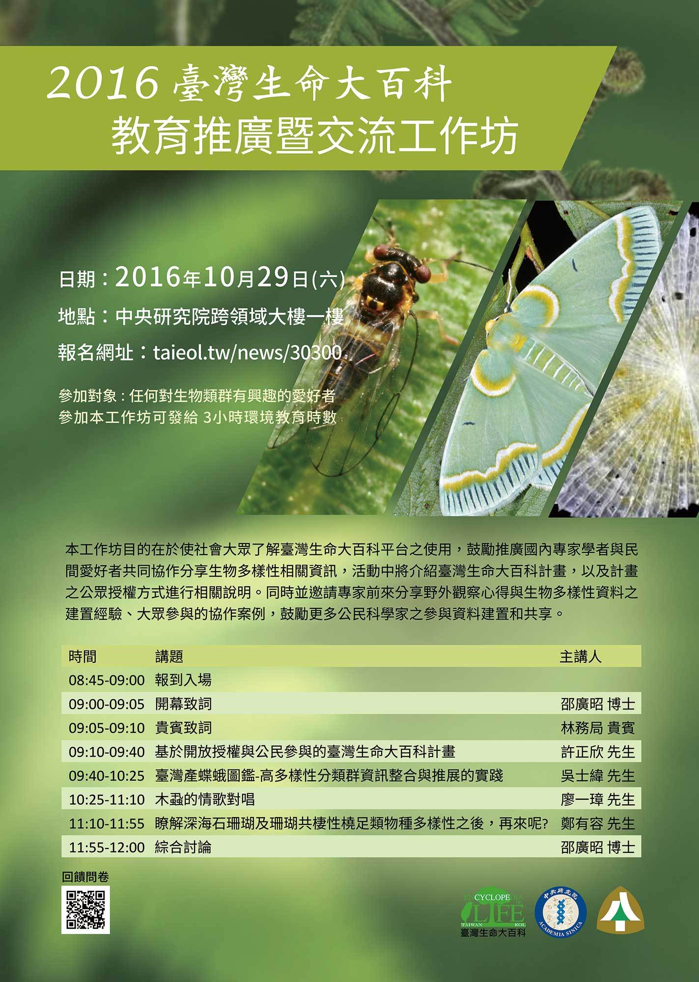2016臺灣生命大百科教育推廣暨交流工作坊