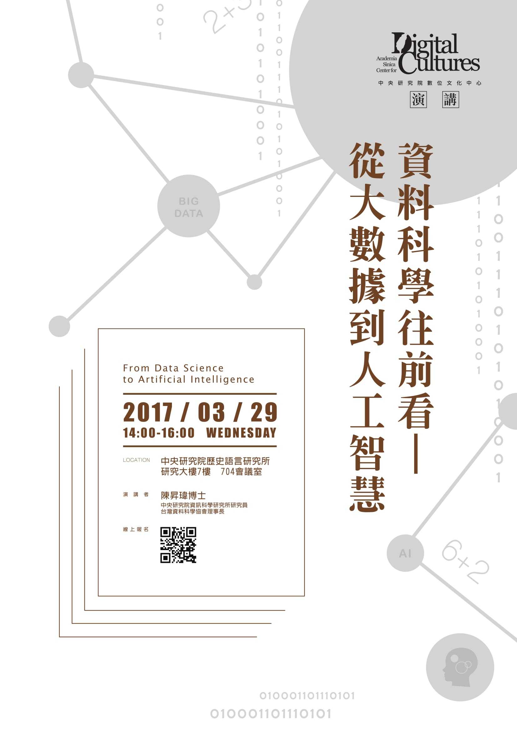 【專題演講】資料科學往前看-從大數據到人工智慧 (3/29,開放報名至3/22)