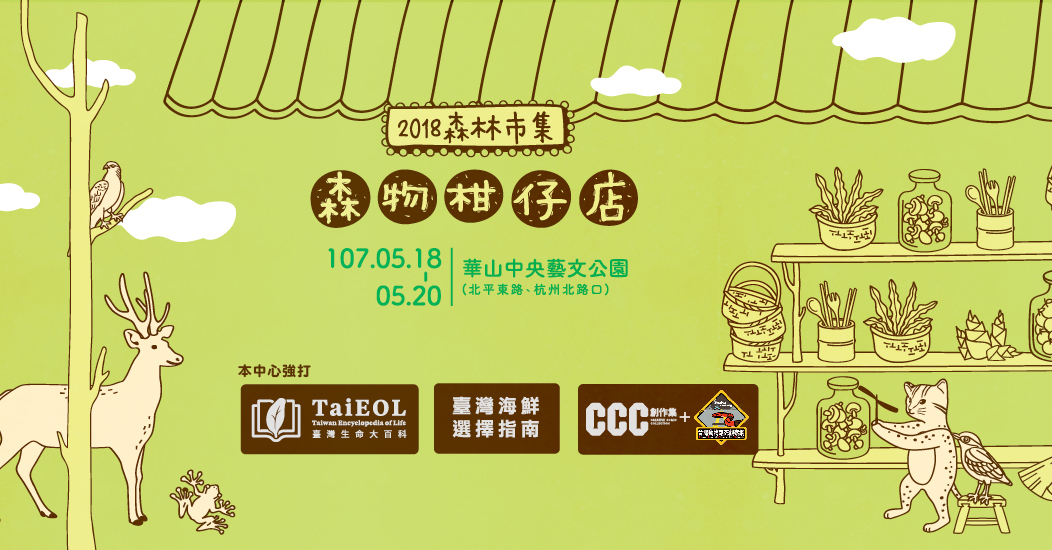 為響應「國際生物多樣性日」,本中心將於「2018森林市集—森物柑仔店」,以「臺灣生命大百科」與「臺灣魚類資料庫」的豐碩物種資訊為基礎,打造自然科普小遊戲,展示跨界創作的動人成果,讓社會大眾透過互動體驗,看見臺灣生物多樣性之美!