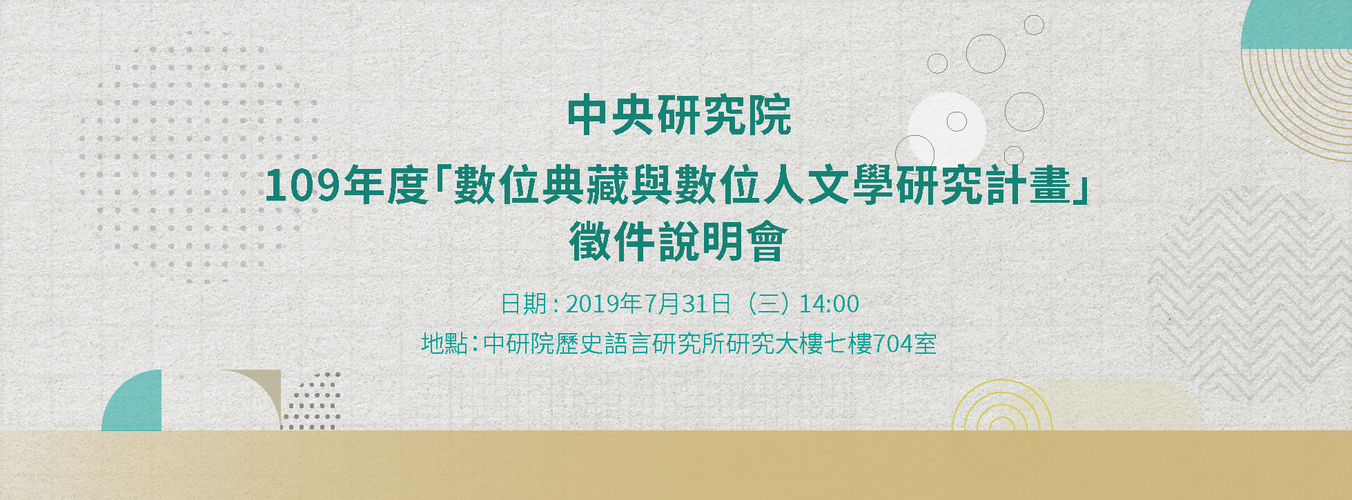 【活動公告】中央研究院109年度「數位典藏與數位人文學研究計畫」徵件說明會(7/31)