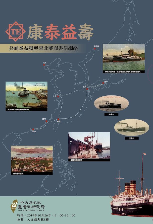 此特展挑選臺灣史研究所重量級館藏《長崎泰益號文書》(文書產生年代1889-1959)中的臺北藥商書信,同時結合本計畫標的日治時期的旅券研究成果,展示日治時期臺灣的藥商與長崎泰益號採購與批發藥材的旅程。此外,亦展示藥商們透過書信溝通往來,讓「米國粉光參」、「暹羅貢燕窩」、「老山高麗參」、「頂上白木耳」、「正安南官燕」、「關東本山鹿茸」等藥材可以飄洋過海來臺灣,進入臺北大稻埕藥行的櫥窗內,消費者才能有病醫病,沒病保健的歷史紀錄。