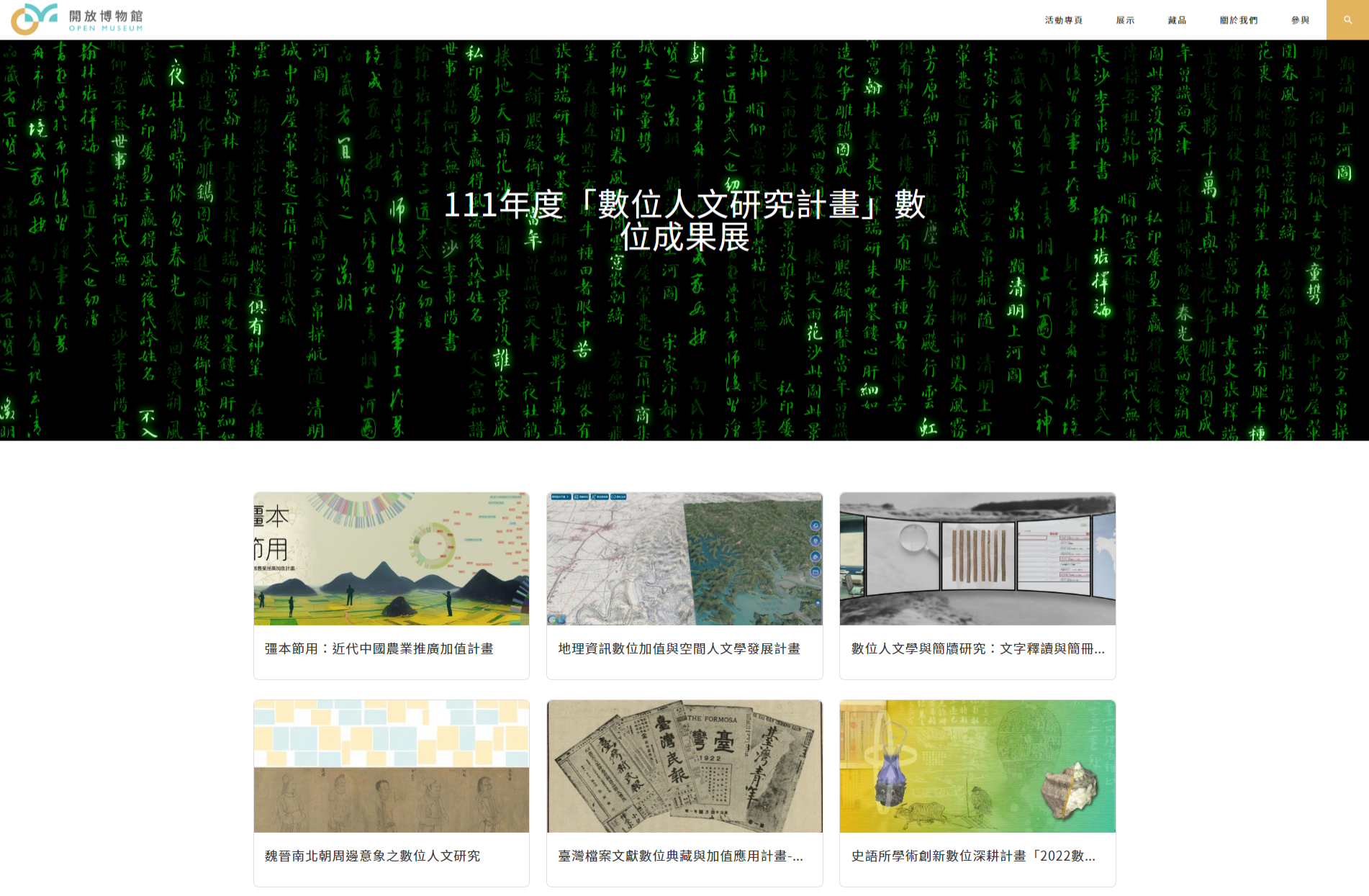 今年中研院「數位人文研究計畫」再度以「開放博物館」為平台,線上展出年度研究成果。成果展於今日正式上線,集結來自院內各單位的11個子計畫,共推出11個主題特輯、16個數位展覽。