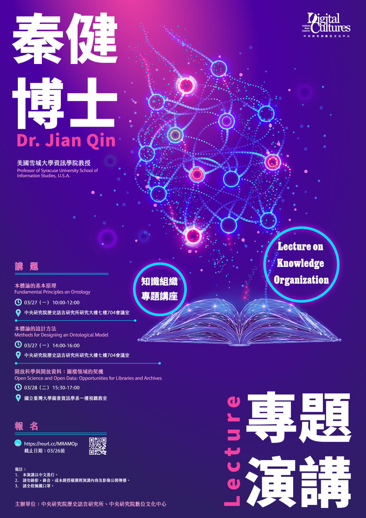【活動預告】秦健博士知識組織專題講座(3/27-3/28,開放報名至3/26)