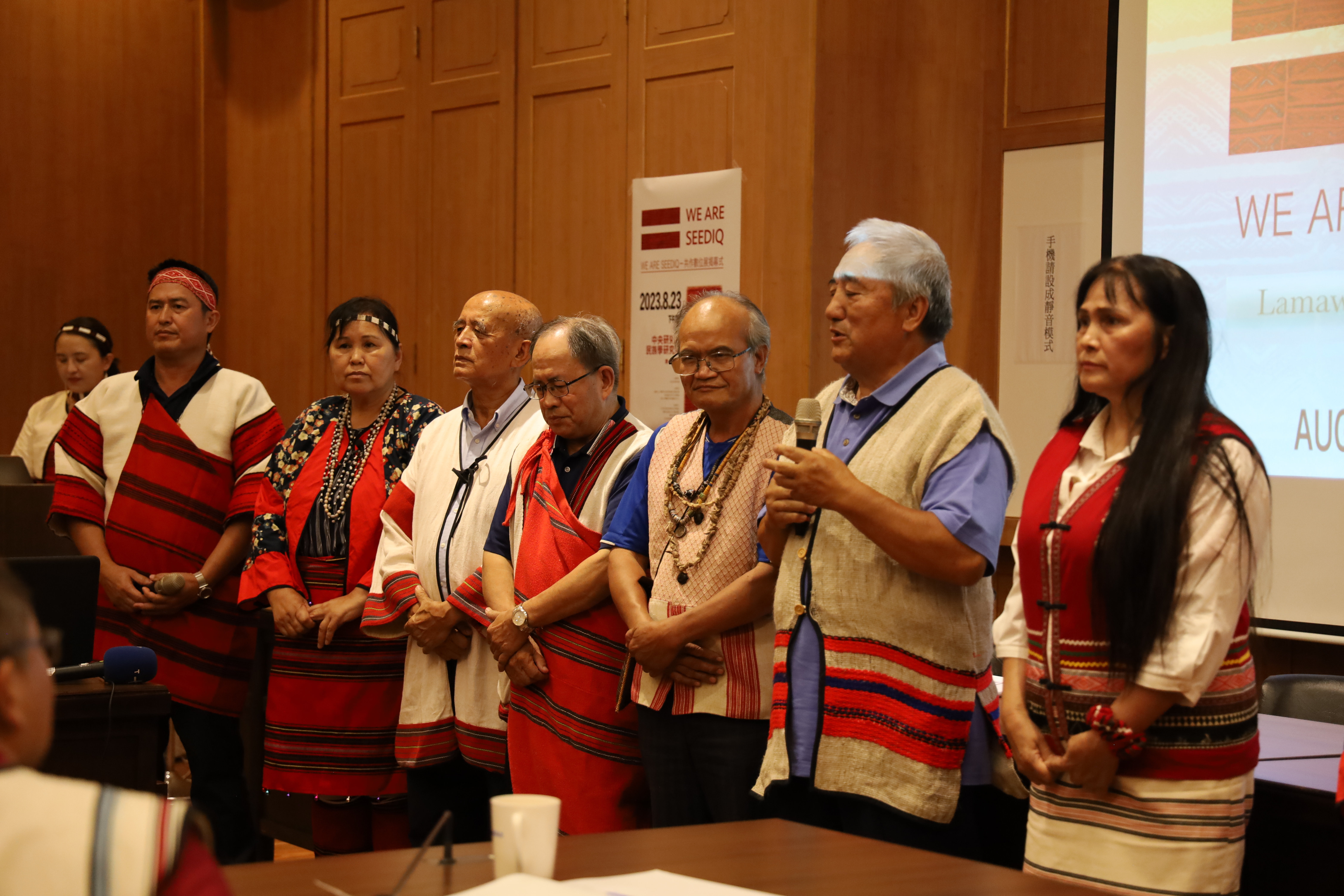 本中心召集人陳熙遠(前排右四)與賽德克民族議會總召Walis Pering(瓦歷斯.貝林。前排左五)、瑞典國家世界文化博物館研究員兼策展人李東(前排右五)、靜宜大學賽德克族知識研究中心主任Iwan Pering(伊婉.貝林。前排右一)、中央研究院民族學研究所博物館主任郭佩宜(前排右三)、原住民族委員會賽德克族族群委員Awi Nokan(吳永昌。前排左四)、共作數位展中文版策展人Kumu Basaw(谷慕.巴紹。後排右二)等貴賓合影。陳熙遠介紹本中心「開放博物館」線上平台,並預告將與賽德克民族議會合作建置「賽德克族數位博物館」。李東闡述瑞典國家世界文化博物館與賽德克族合作契機及重要性。郭佩宜說明中研院民族所博物館與臺灣原住民族進行實體與數位共作展的歷程與意義。賽德克族人一同見證典藏於瑞典的祖先文物以數位形式首次返鄉展出。