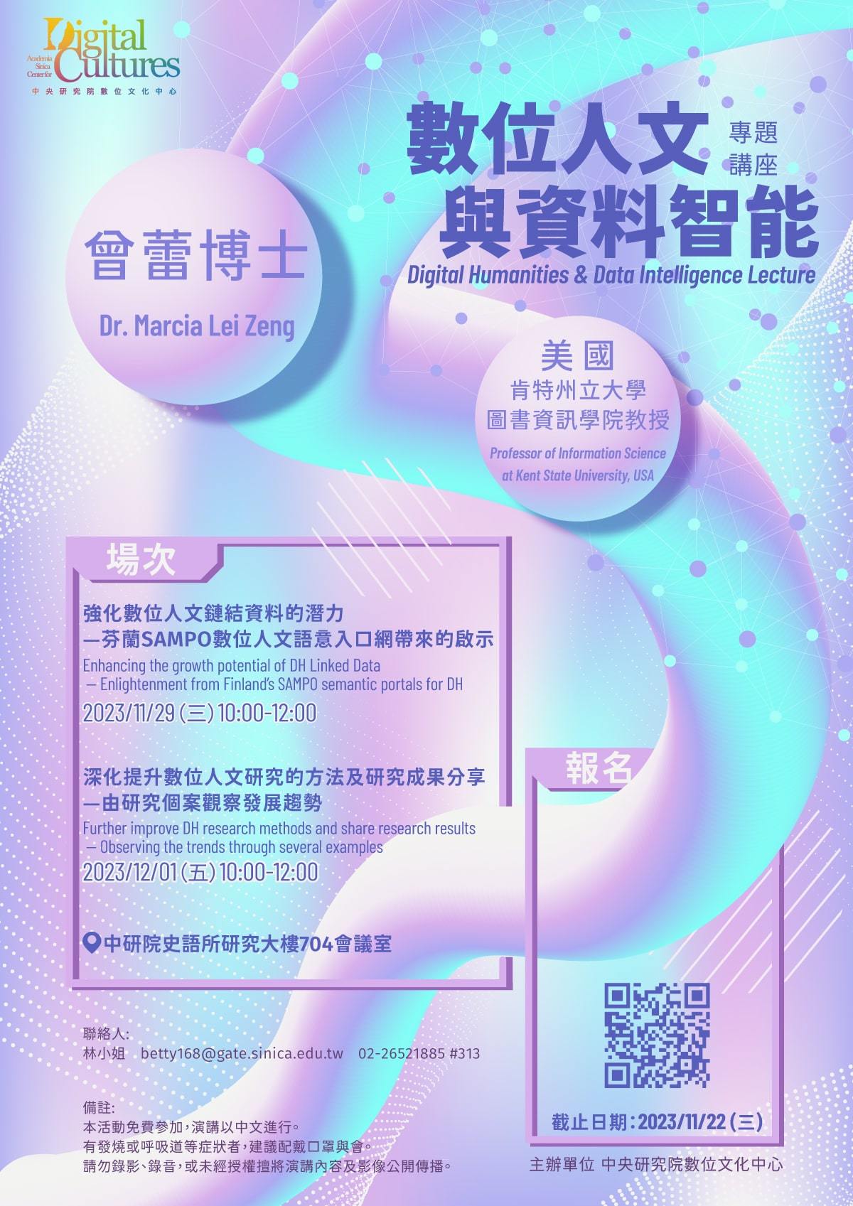 聯絡人:林小姐,betty168@gate.sinica.edu.tw,02-26521885 分機:313