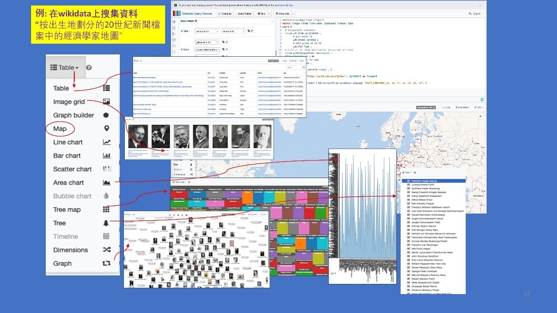 德國國家經濟資訊中心ZBW將「20世紀新聞檔案」(PM20)資料發布於「維基數據」(Wikidata)後,平台提供眾多查詢問題以利使用者即時獲取答案,如「20世紀新聞檔案」中的經濟學家出生地分布圖與視覺化資料(圖片提供/曾蕾)